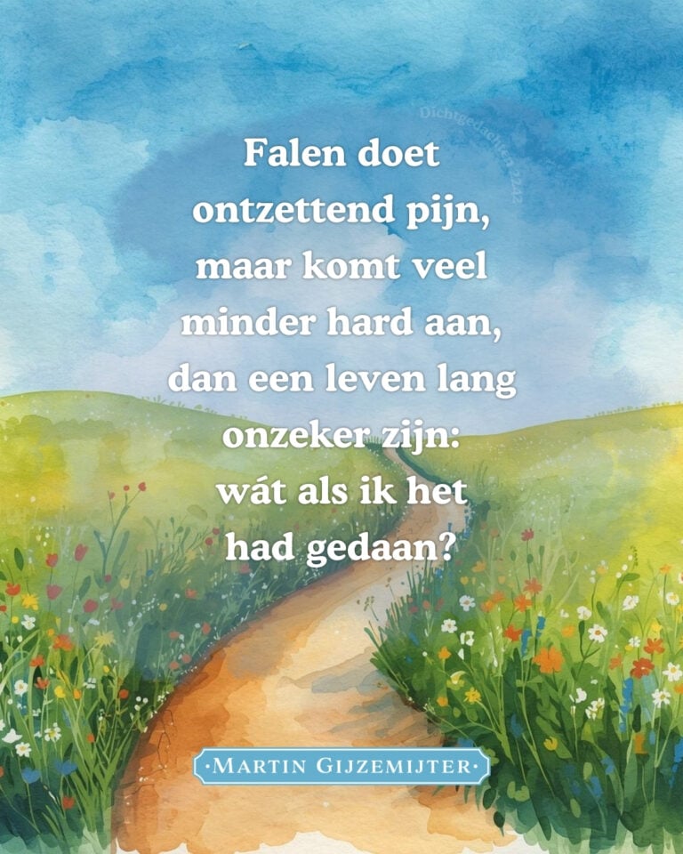 Falen doet ontzettend pijn,maar komt veel minder hard aan,dan een leven lang onzeker zijn:wát als ik het had gedaan?