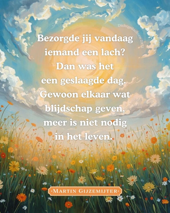 Kracht, Tegenslag, ZelfvertrouwenBlijdschap geven- Dichtgedachten 2272 Geplaatst op 19 maart 202619 maart 2026 door Martin Gijzemijter 19 mrt Vind je dit gedicht mooi?Deel het op FacebookLees ook:PositiviteitTegenslagMomentenVerdriet Martin Gijzemijter Doolhof – Dichtgedachten #1407