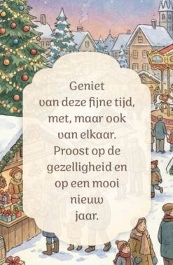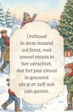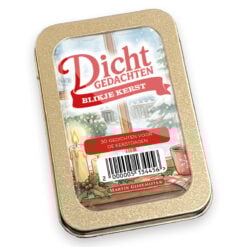 Het Blikje Kerstwensen zit vol met… je raad het al: Kerstwensen! Het zijn kleine kaartjes, met daarop een vrolijke kerstgedachte en een kerstig plaatje. Je kunt de kaartjes cadeau doen of voor jezelf houden, ze ergens neerzetten of ophangen of in het blikje laten zitten en er af en toe even bij pakken. De kaartjes zitten in een aluminiumblikje met daarop het thema zichtbaar achter het venster.