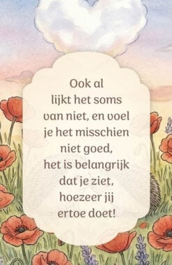 Kleine kaartjes die je met de juiste woorden aan de juiste persoon kunt geven. Weer eens heel wat anders dan bloemen. Erg blij mee.