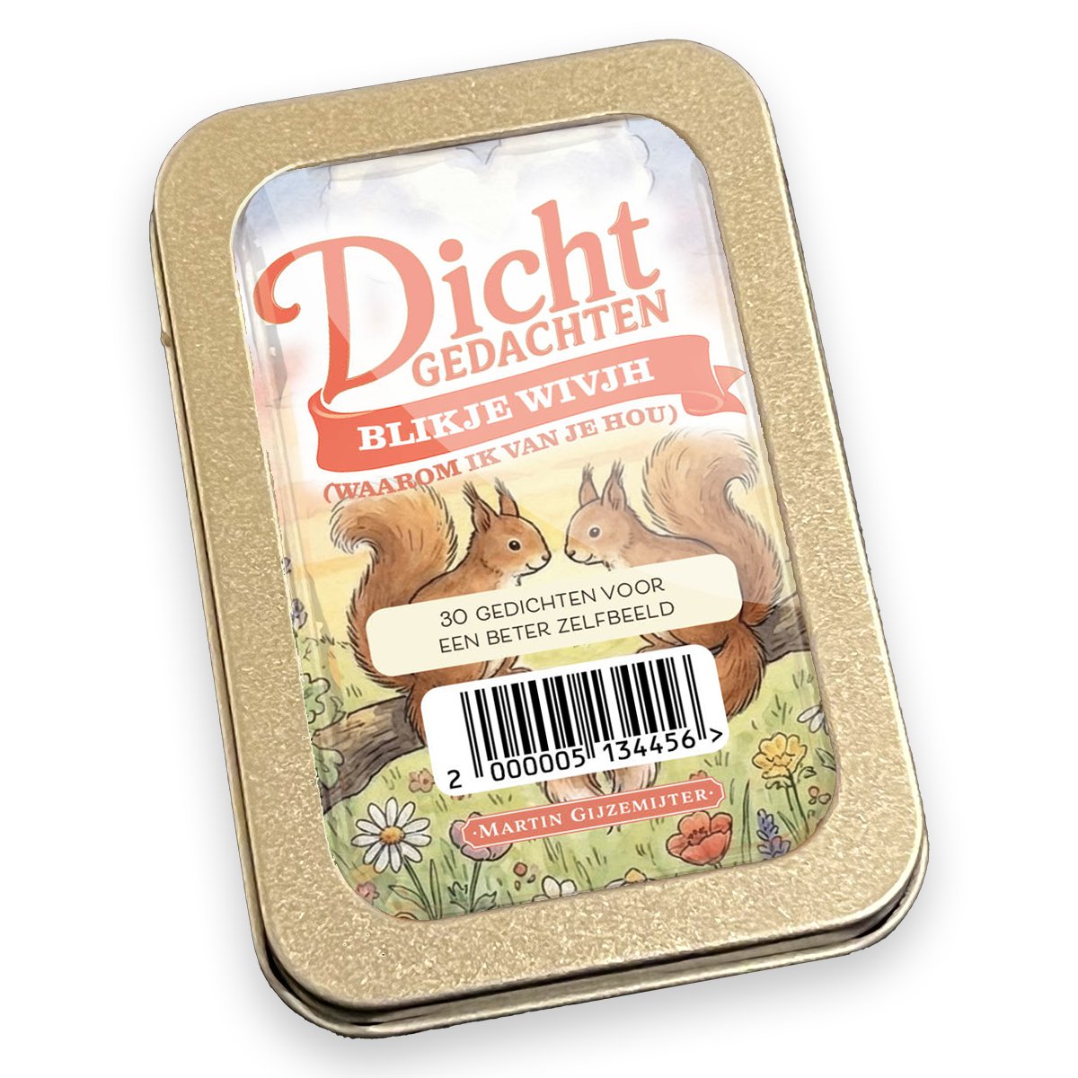 Het blikje Waarom ik van je hou bevat 30 kaartjes met inspirerende gedichten over zelfbeeld, zelfliefde, zelfvertrouwen en reflectie. Het zijn dertig kaartjes die je eraan helpen herinneren dat je goed bent zoals je bent, dat niemand zo streng voor je is als jijzelf, en dat als je jezelf door de ogen van een ander zou zien, je waarschijnlijk een stuk milder voor jezelf zou zijn. De kaartjes zijn perfect om weg te geven aan iemand die wel een oppepper kan gebruiken wat zelfvertrouwen betreft, maar zijn natuurlijk ook prima geschikt voor jezelf.