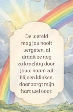 De periode die je doormaakt na het overlijden van een dierbare is niet makkelijk. Het verdriet dat je voelt is niet weg te nemen, en echte troost is dan ook niet mogelijk. Wij schrijven al jaren troostende woorden voor mensen met verdriet en hoewel ook wij geen oplossing kunnen bieden, kunnen woorden soms wel wat verzachten. Wij maakten daarvoor dit Blikje Troost, met daarin 30 troostkaartjes. Elk kaartje bevat een kleurrijke afbeelding en een gedicht van vier regels. Gedichten die je eraan helpen herinneren dat het verdriet dat je voelt er mag zijn, en die je proberen houvast te geven, een beetje licht in een donkere periode.
